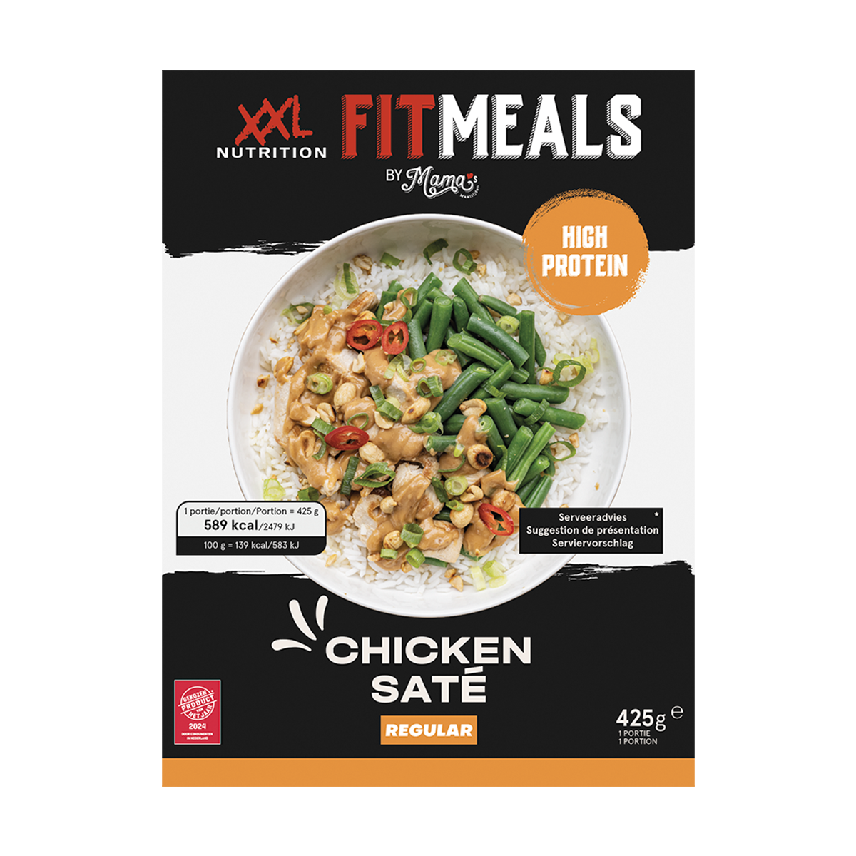De kipsaté is gemaakt van de lekkerste kipfilet die op Oosterse wijze is gemarineerd in een heerlijke satésaus. De kipfilet is mals en sappig en bevat een hoog eiwitgehalte (35,1 gram per portie); niet geheel onbelangrijk wanneer jouw doel spiermassa opbouwen is! Daarnaast is de satésaus bereid met authentieke kruiden en specerijen die de maaltijd een heerlijke, exotische smaak geven. Dat scheelt je weer een reisje naar Indonesië!