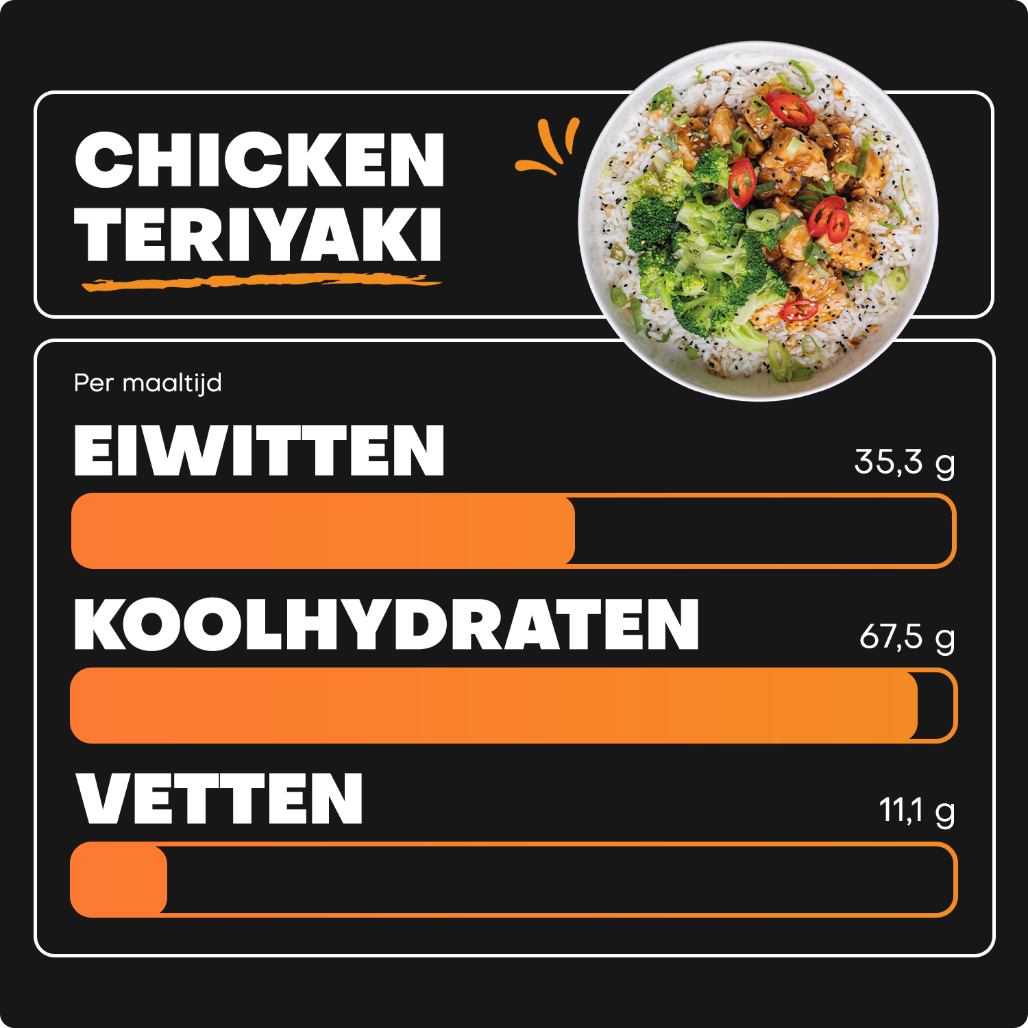 sla je niet snel de plank mis; voeg er nog eens een heerlijke, smaakvolle Teriyaki saus aan toe en je hebt een perfecte balans tussen eiwitten, koolhydraten en groenten om jouw sportprestaties te ondersteunen.