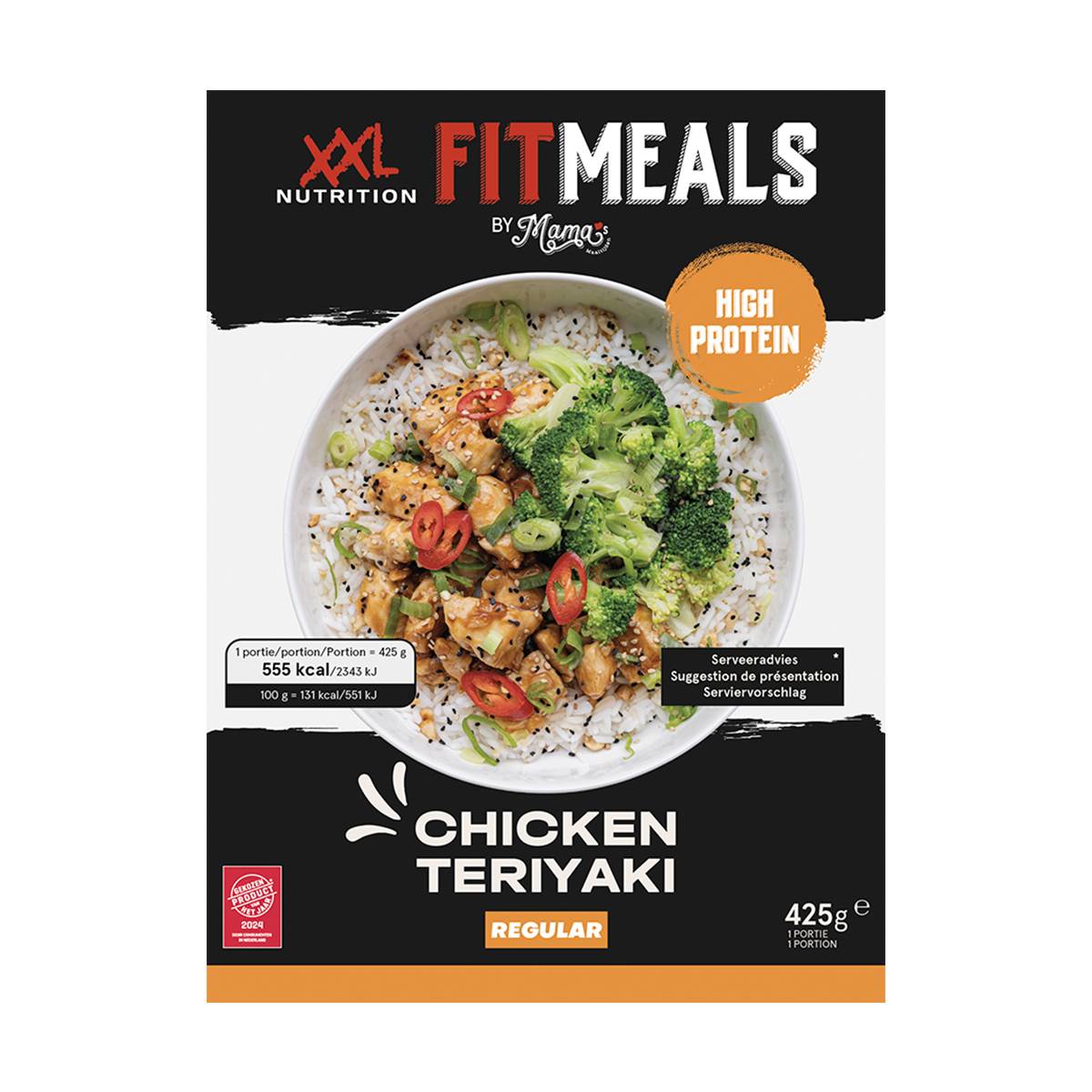 Onze kant-en-klare sportmaaltijd Chicken Teriyaki bevat maar liefst 40 gram eiwitten per portie; eiwitten zijn de bouwstenen van spierweefsel en spelen een cruciale rol bij het herstellen en opbouwen van spieren na een intensieve training. Deze kant-en-klare sportmaaltijd is dan ook een perfecte keuze wanneer jij aan je spiermassa werkt!